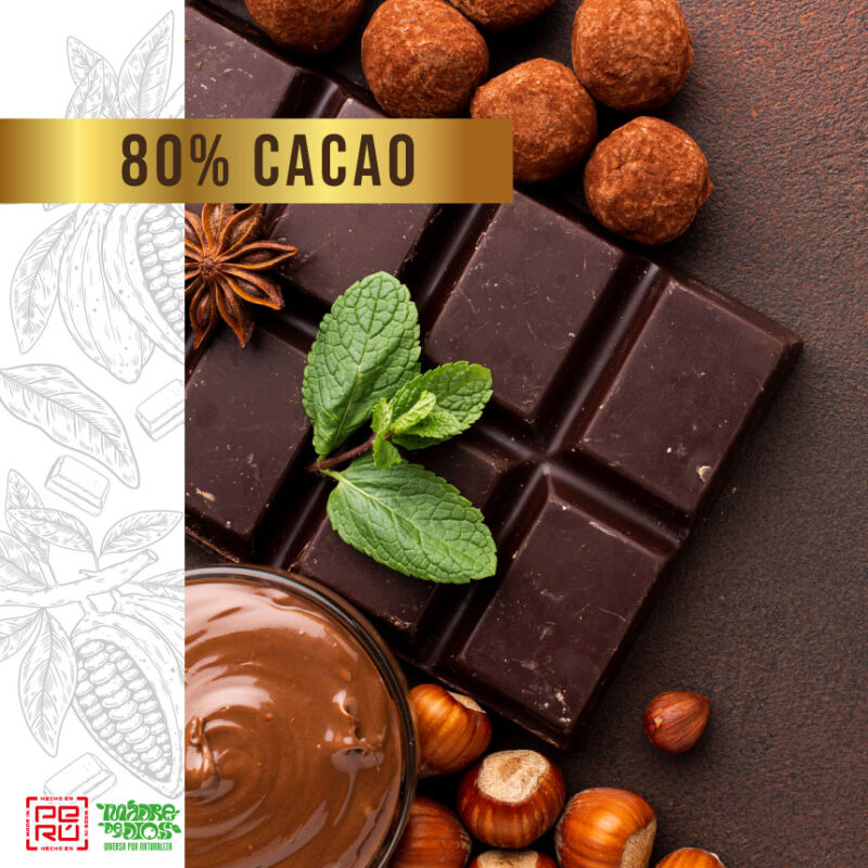 Nuestro chocolate con 80% de cacao es una verdadera delicia para los sentidos. Con un perfil aromático equilibrado, ofrece una intensidad rica y amarga, sustentada por notas de grué torréfié.